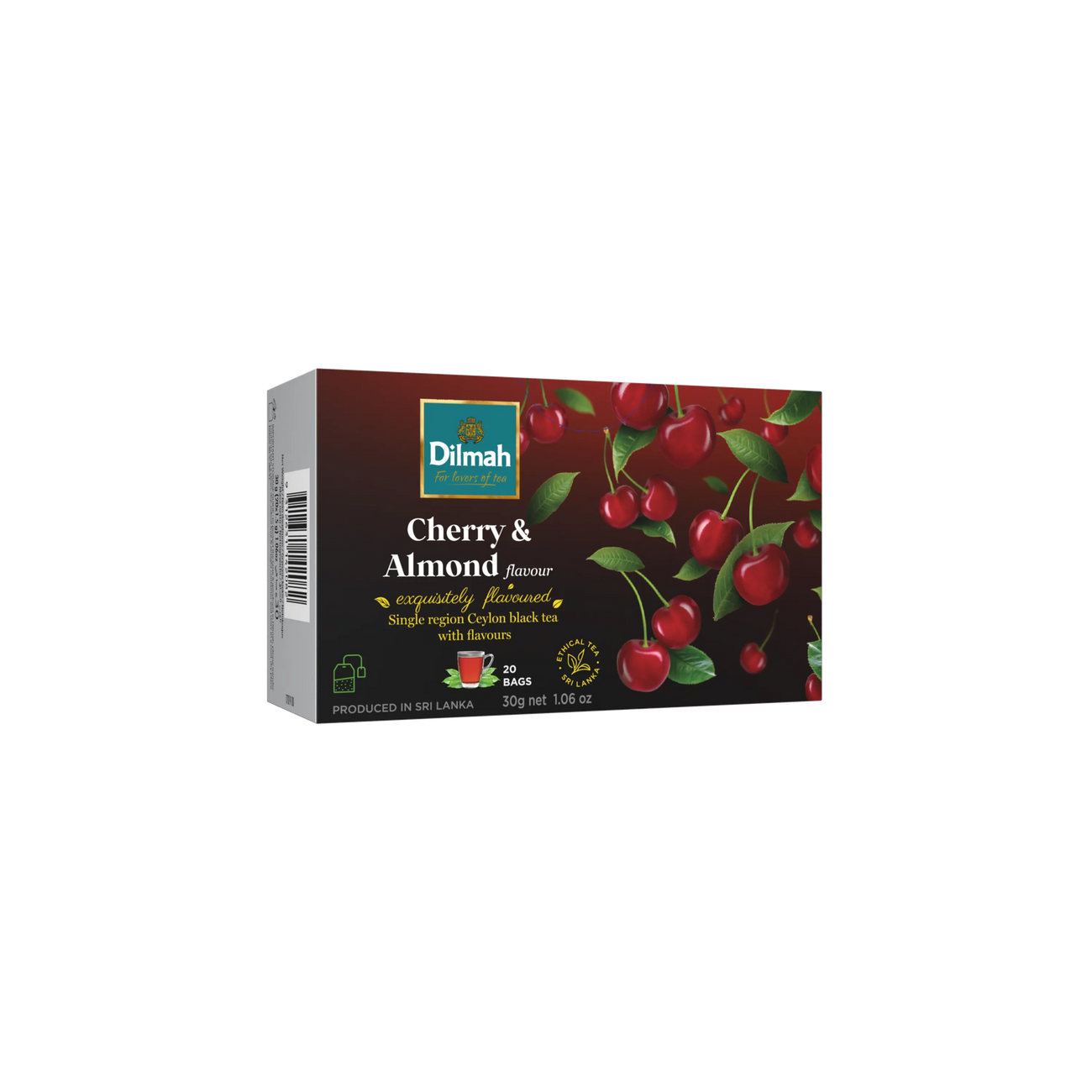 A deliciously different combination of the sweetness in ripe dark cherries fused with a bitter sweet almond note. A perfect partnership with a high grown Ceylon Single Region tea.